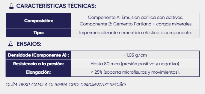 RESISTÊNCIA DUPLA : Projetado para suportar Pressão Hidrostática Positiva (água interna, como na piscina) e Negativa (água de lençol freático, como em subsolos e fundações). É proteção de dentro para fora e de fora para dentro.